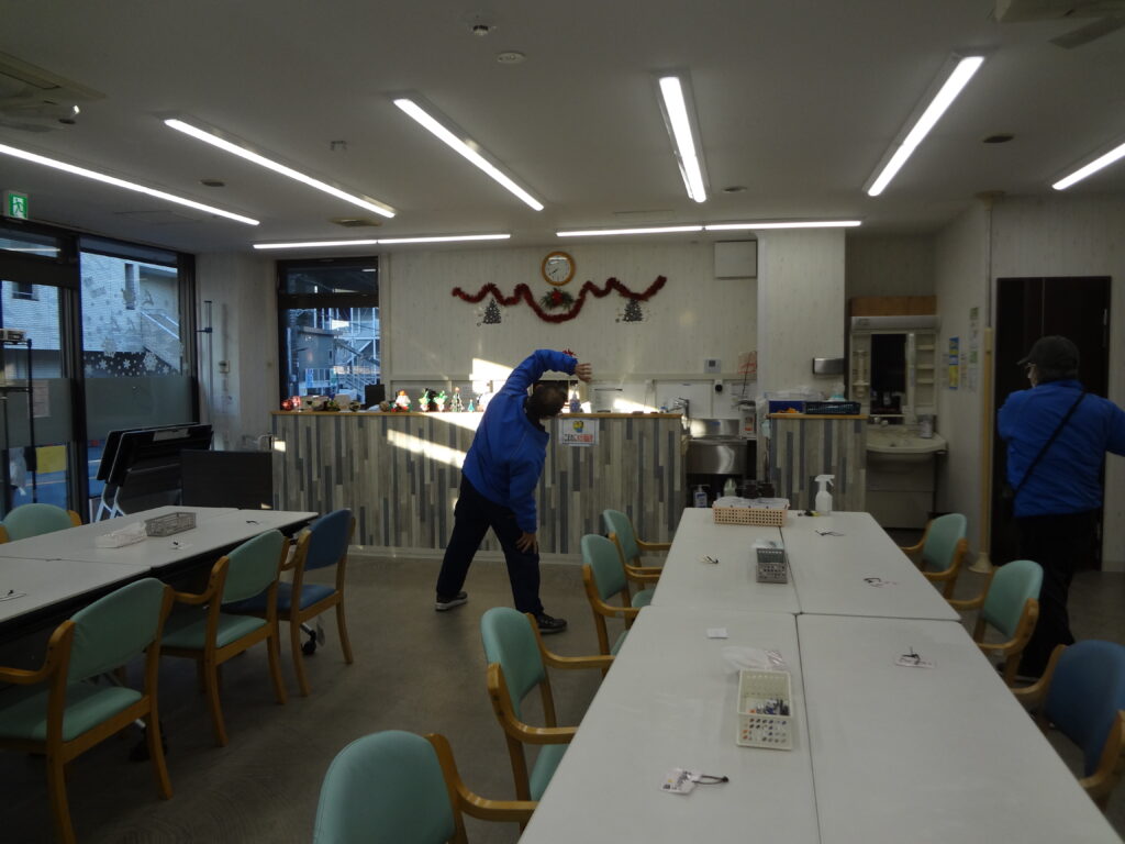 体を動かしてしっかり身体を目覚めさせ、運転と乗り降りの介助に備えます。